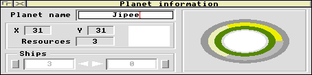 The name of the planet may be changed from here, and also the position on the map, sides flag, and current resources level is also shown.
